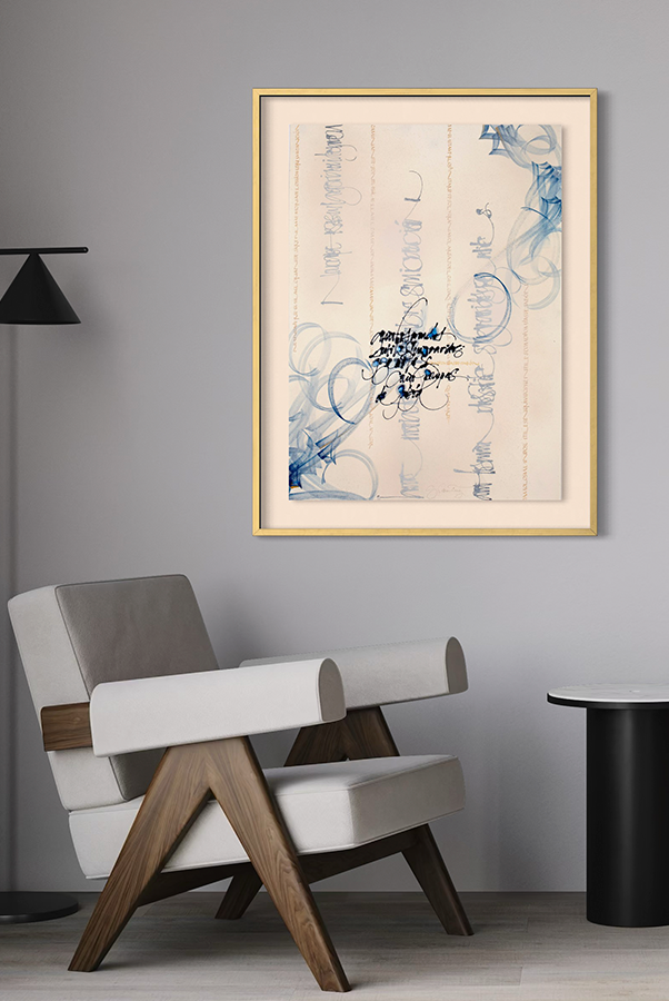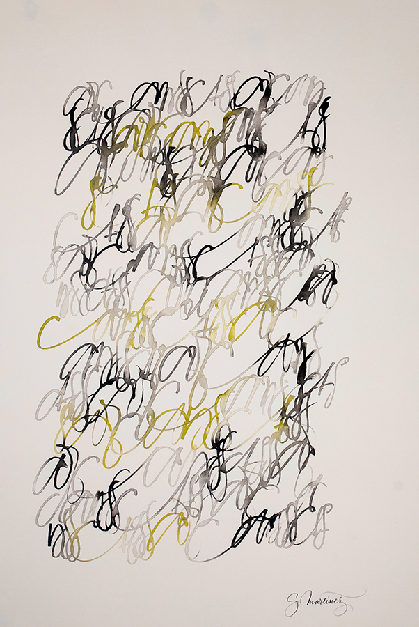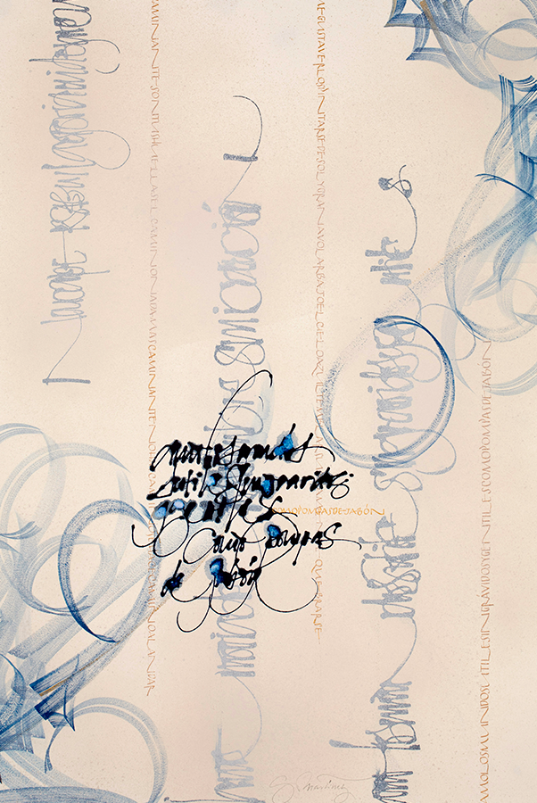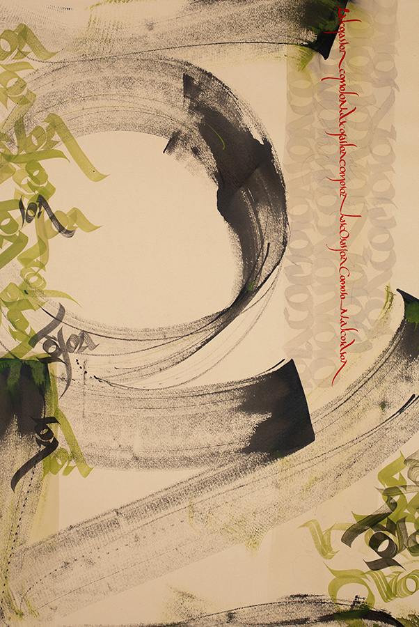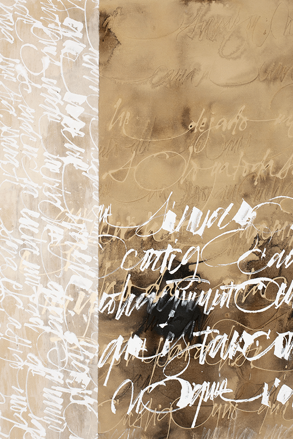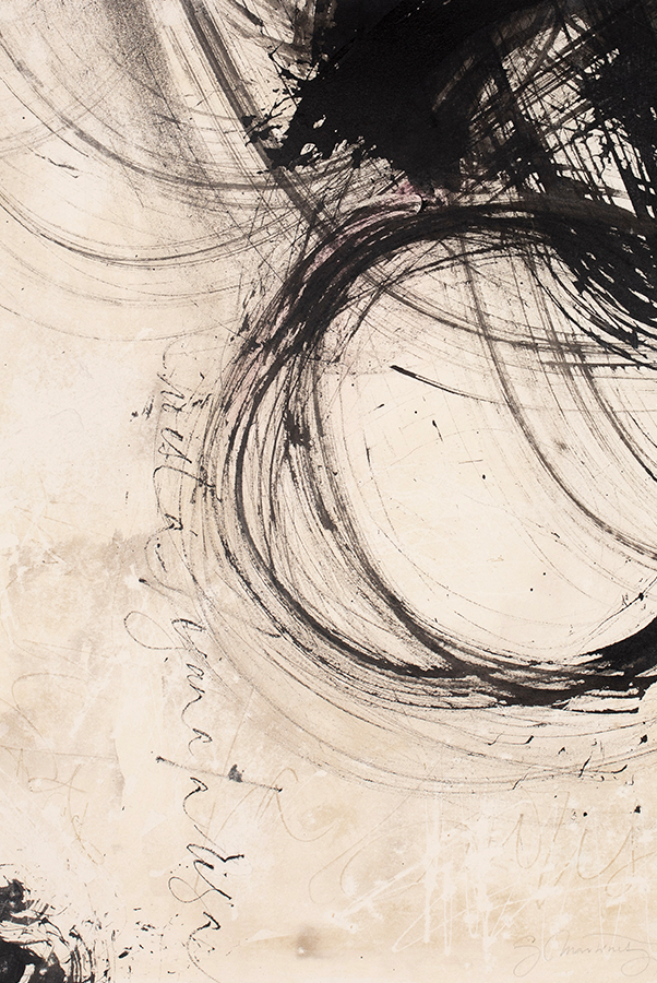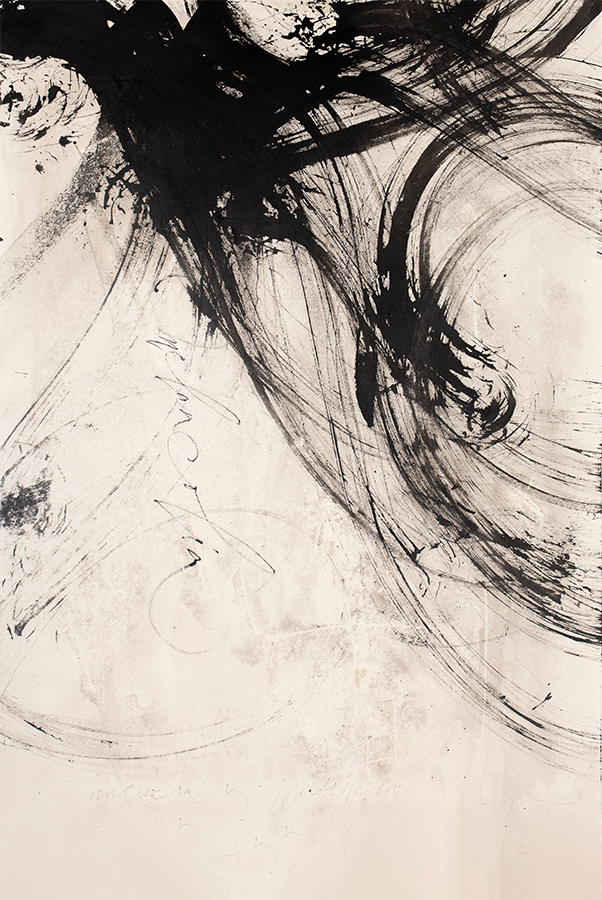Juego con los trazos, con su fuerza. El trazo no admite dudas al ser ejecutado y permite congelar el movimiento. Es una instantánea del momento interno; una imagen capturada al vuelo y cargada de emoción.