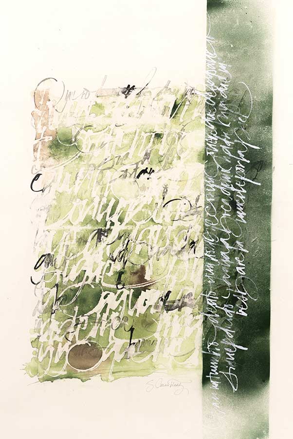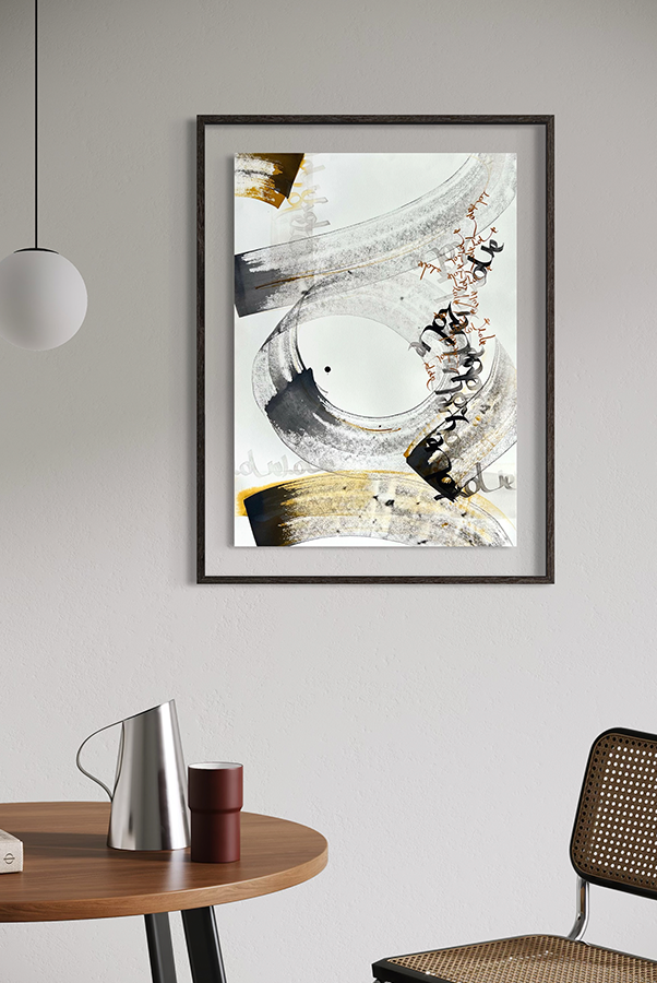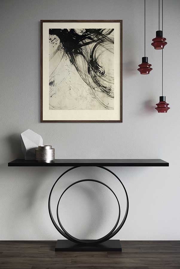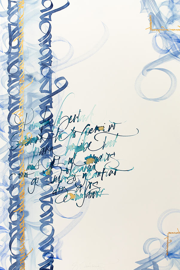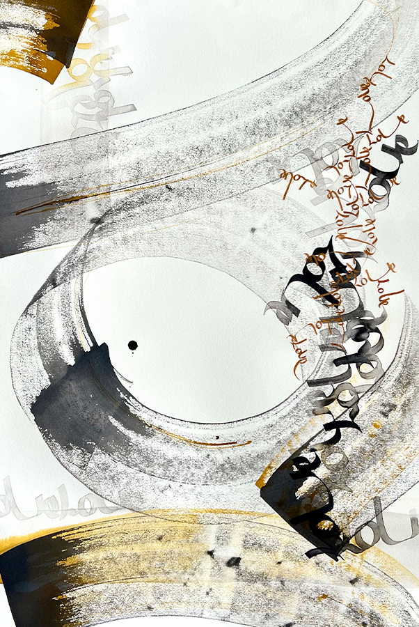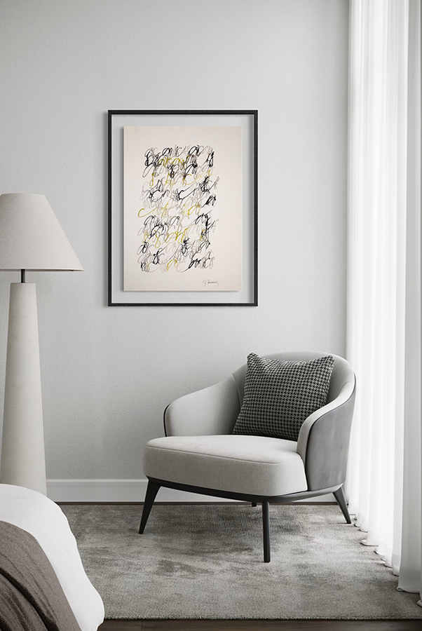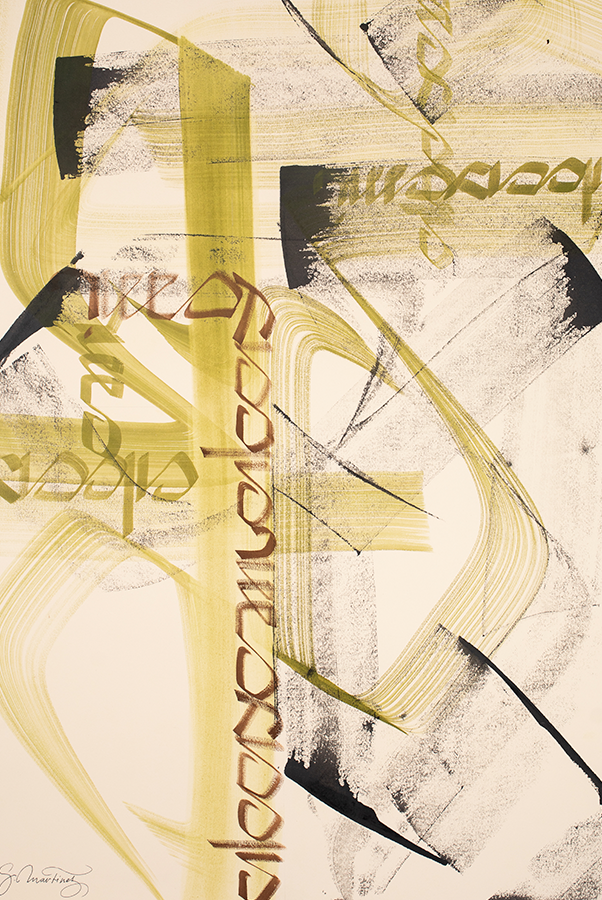 Juego con los trazos, con su fuerza. El trazo no admite dudas al ser ejecutado y permite congelar el movimiento. Es una instantánea del momento interno; una imagen capturada al vuelo y cargada de emoción.